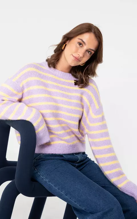 Pullover mit Rundhalsausschnitt und Streifen hellgelb dunkelbraun