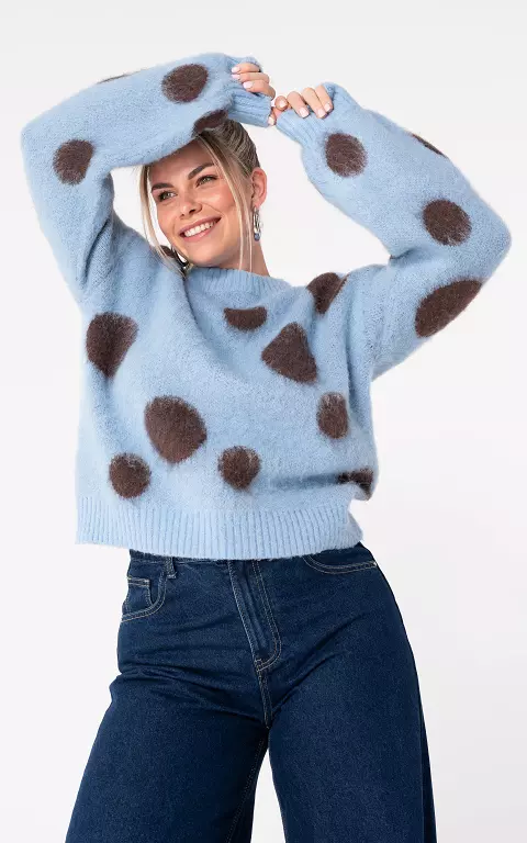 Knitted sweater with text dark brown light blue